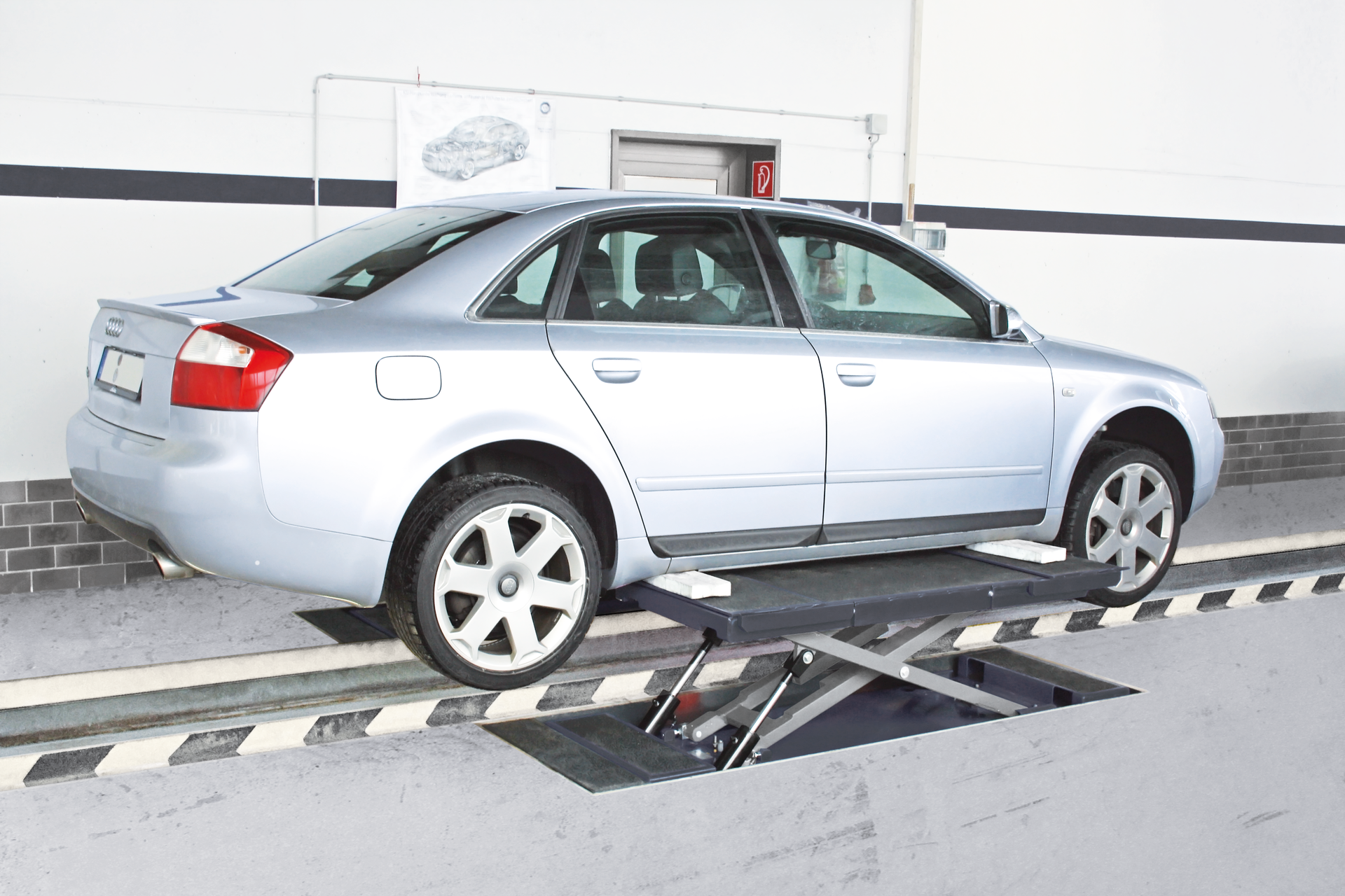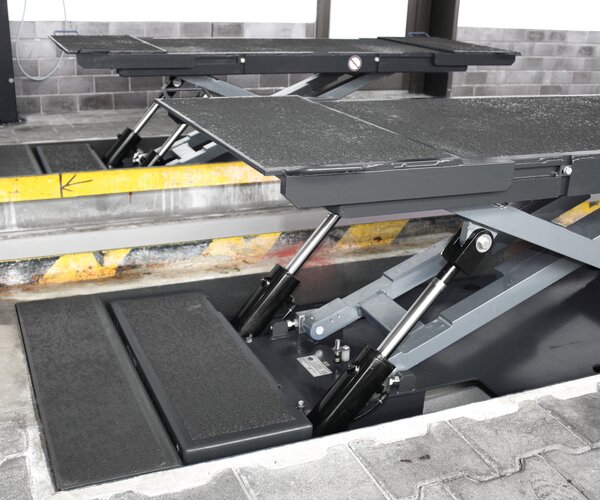 - Einbau bodeneben über Grube, keine mechanische Verbindung zwischen den beiden Scheren