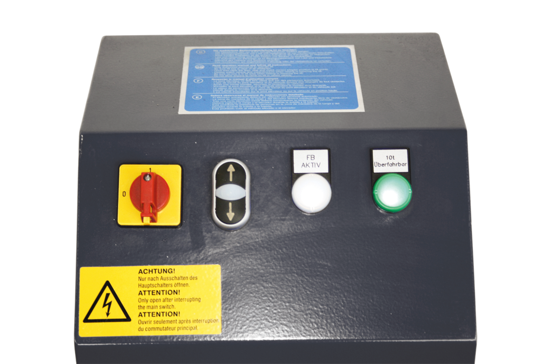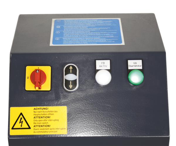- Zusätzliche Bedieneinheit montierbar innerhalb der Grube mit Sicherheitswahlschalter und NOT-AUS-Schalter