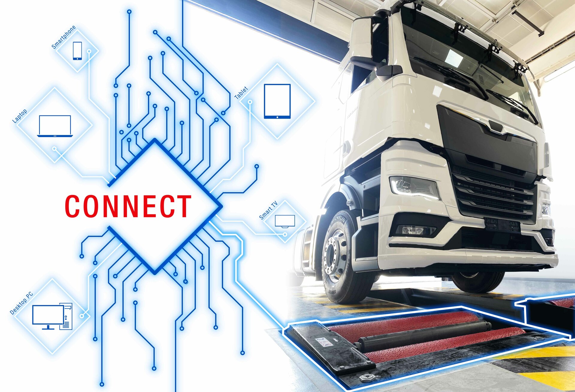- Large test roller diameter of 265 mm specially for the commercial vehicle sector